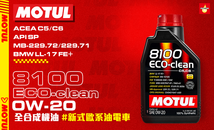 【汽車機油】MOTUL 8100 ECO-CLEAN 0W20 全合成機油