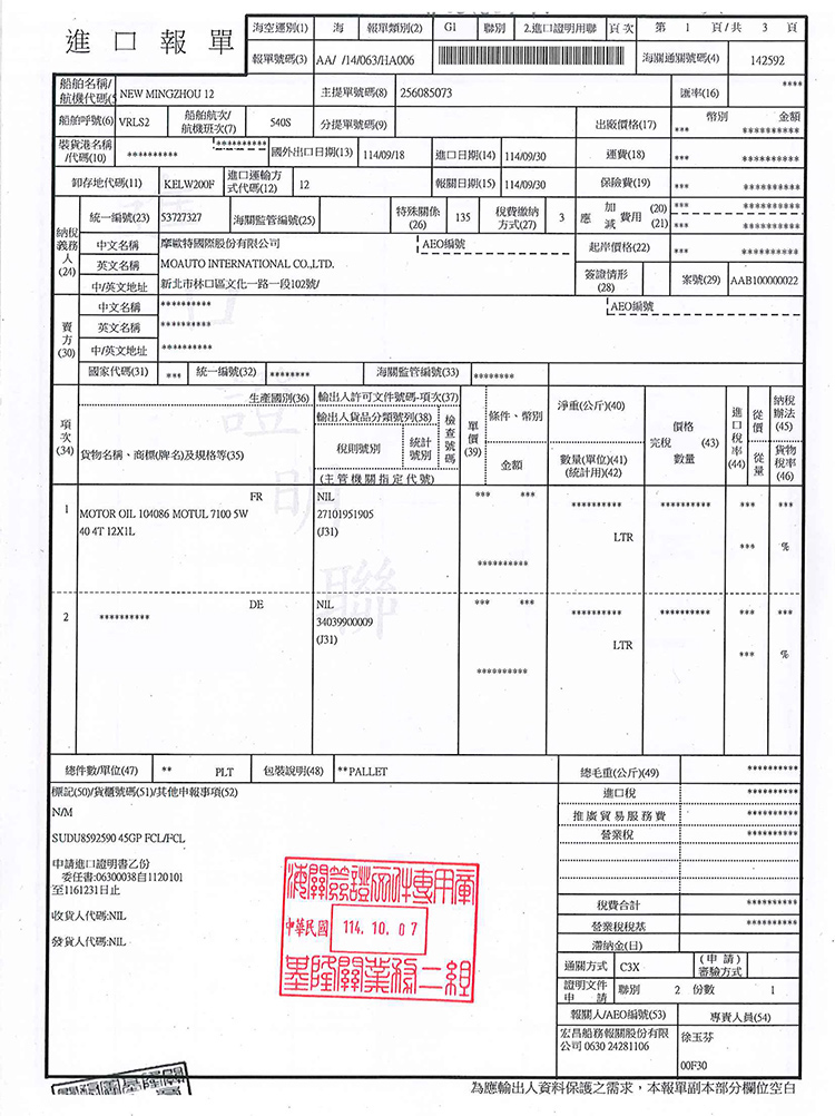 ➤ 依台灣商品標示法規規定商品需標示保存日期,基本上機油放置於陰涼乾燥處且不開封即可保存5年以上。